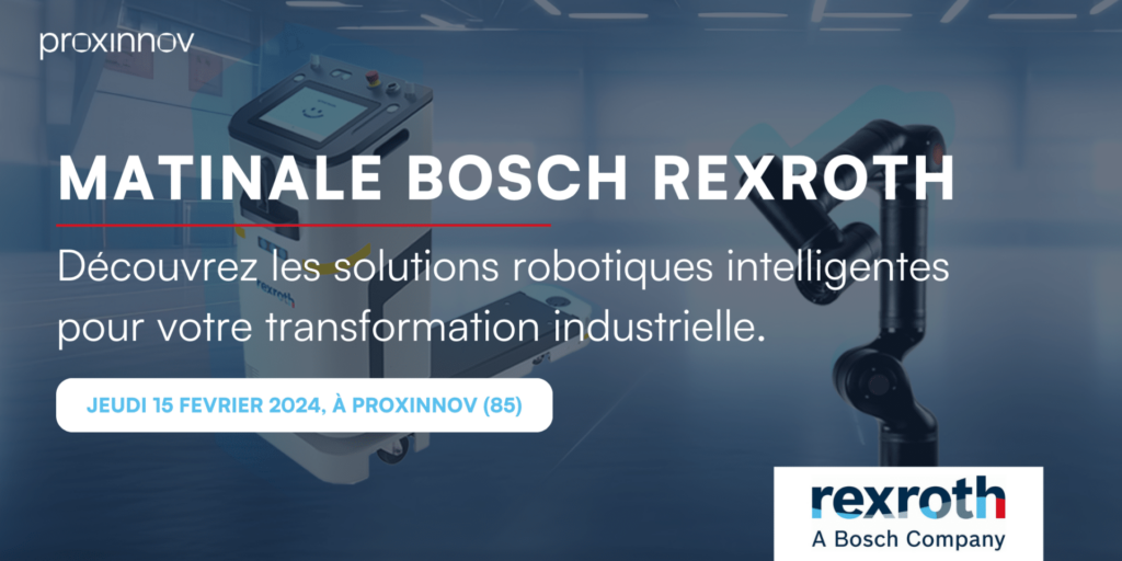 📆 Nous vous donnons rendez-vous le jeudi 15 février 2024 dans les locaux de Proxinnov, La Roche sur Yon de 9h00 à 14h30 pour échanger avec nous sur l’industrie 4.0 et la robotique et assister à des démonstrations.