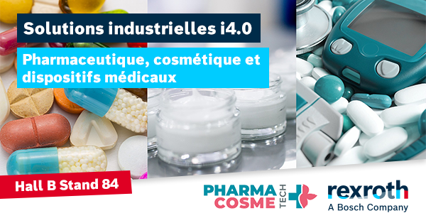 Du 31 mai au 2 Juin 2022, les experts Bosch Rexroth seront présents à Pharmatech Cosmetech, Hall B Stand 84, pour vous présenter nos solutions permettant de répondre aux multiples enjeux et besoins de l’industrie pharmaceutique et cosmétique.